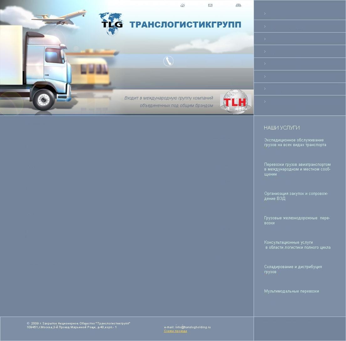 ЗАО«ТРАНСЛОГИСТИКГРУПП» Является одной из компаний ТРАНСНАЦИОНАЛЬНОГО ЛОГИСТИЧЕСКОГО ХОЛДИНГА. Став на сегодняшний день одним из ведущих логистических ЗPL провайдеров в России, компания активно внедряет и продвигает на российском рынке прогрессивные технологии в области логистики полного цикла, преимущества которой уже давно используют бизнесмены всех промышленно развитых стран. ЗАО «ТРАНСЛОГИСТИКГРУПП» готова решить любую логистическую задачу своих клиентов в любой точке мир.